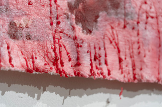 Acrylic, Oil Pastel, and Spray Paint on Hay Rug, Wool, Paraffin